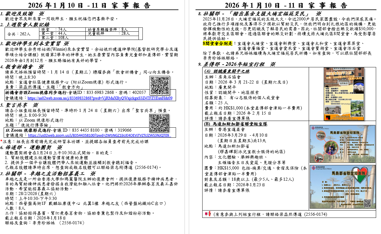 請弟兄姊妹預留時間,1月14日(星期三)踴躍參與「教會祈禱會」同心向主禱告。