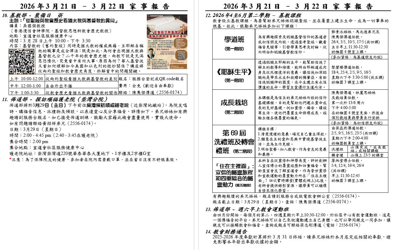 請弟兄姊妹預留時間,3月25日(星期三)