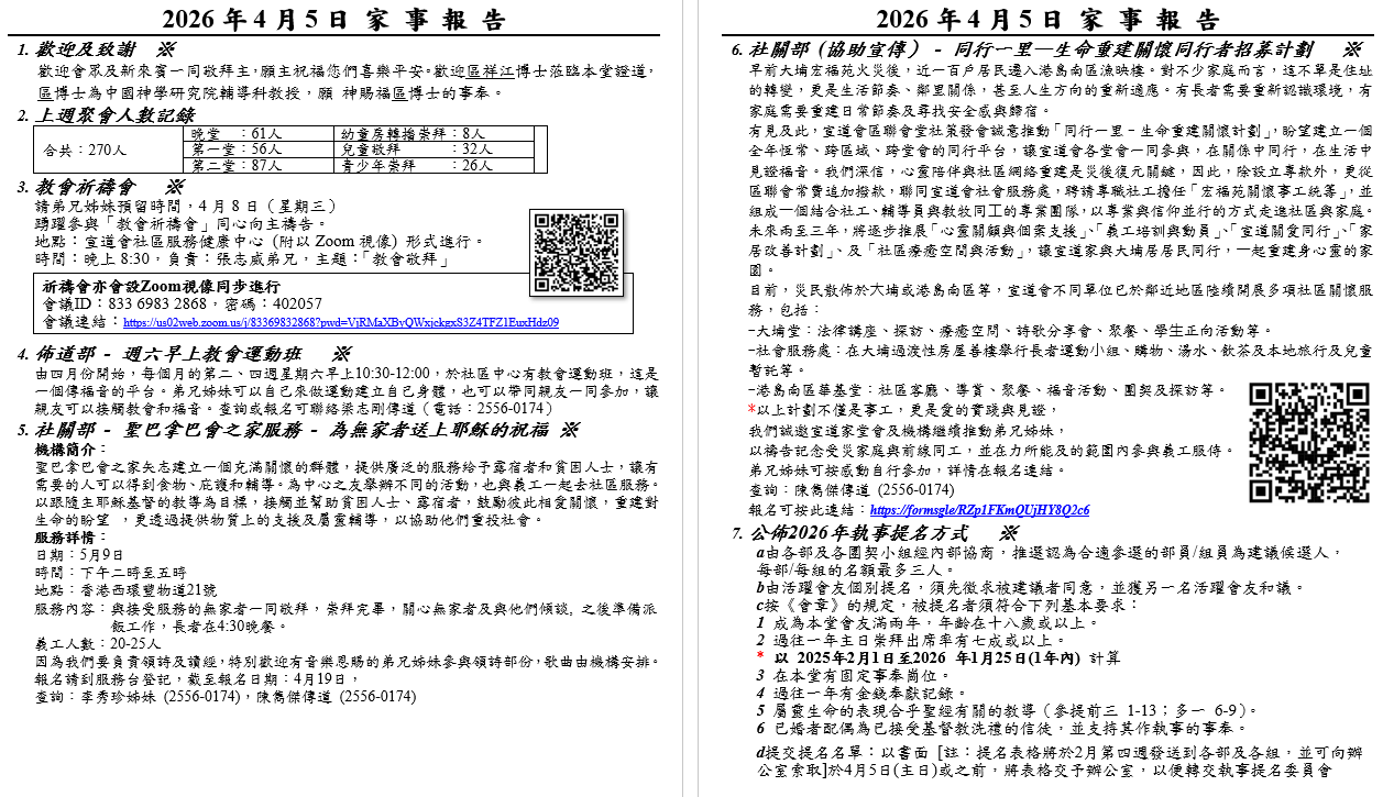 請弟兄姊妹預留時間,4月8日(星期三)