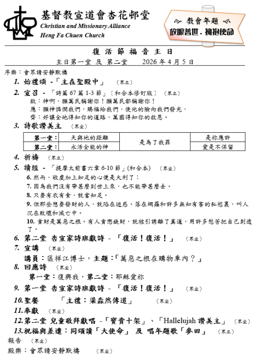 4月5日復活節福音主日第二堂網上崇拜直播