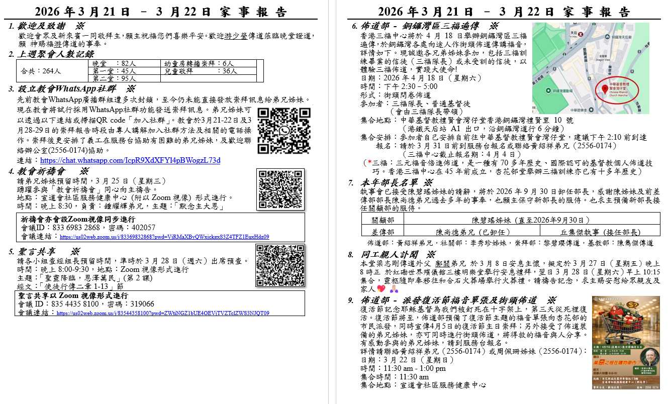 請弟兄姊妹預留時間,3月25日(星期三)