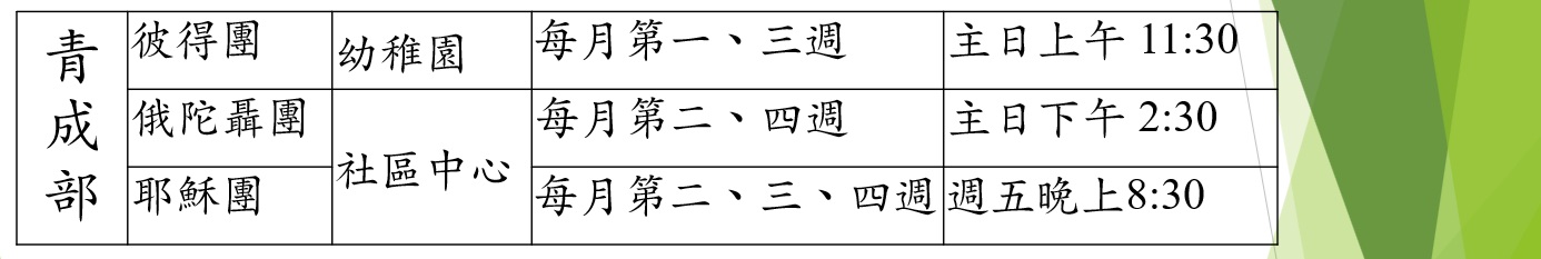 青成部的目標是【凝聚肢體,實踐使命】。